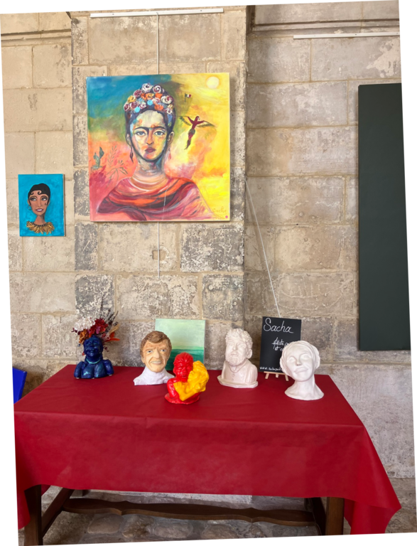 Maniant différentes techniques (Peinture à l’huile, au couteau, acrylique, fusain, huile, pastel, trompe l’œil, faux marbre, faux-bois, sculpture, Raku, poterie et céramique), l’artiste multiplie les