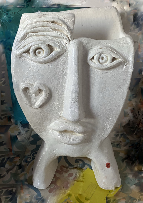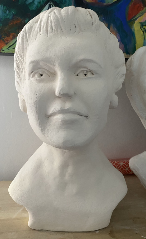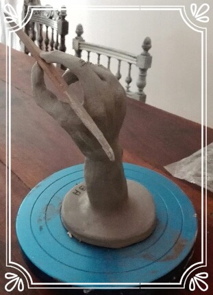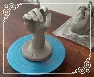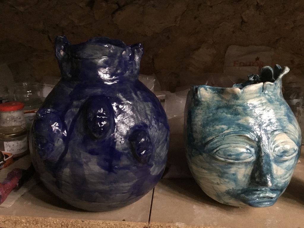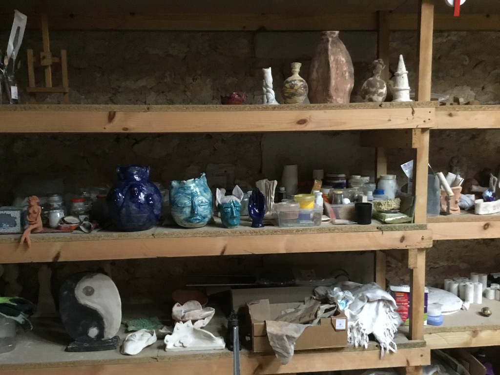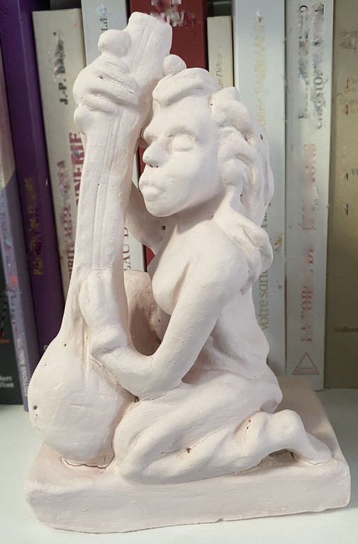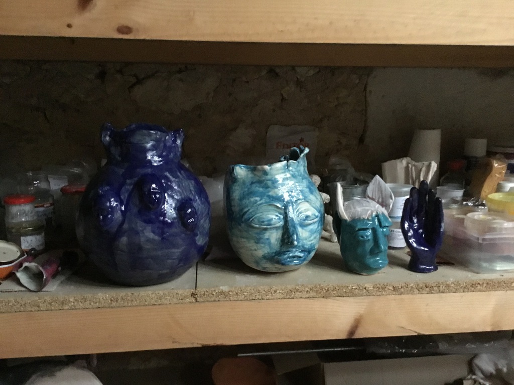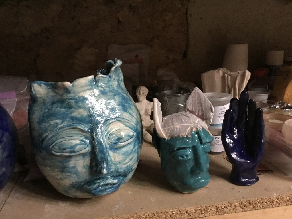 Elle sulpte des formes en volume, en relief soit en ronde-bosse, en haut relief ou bas relief ou modelage selon ses envies.