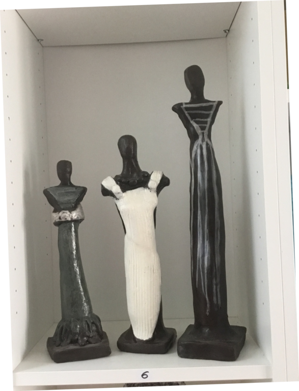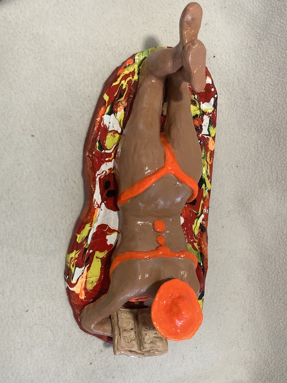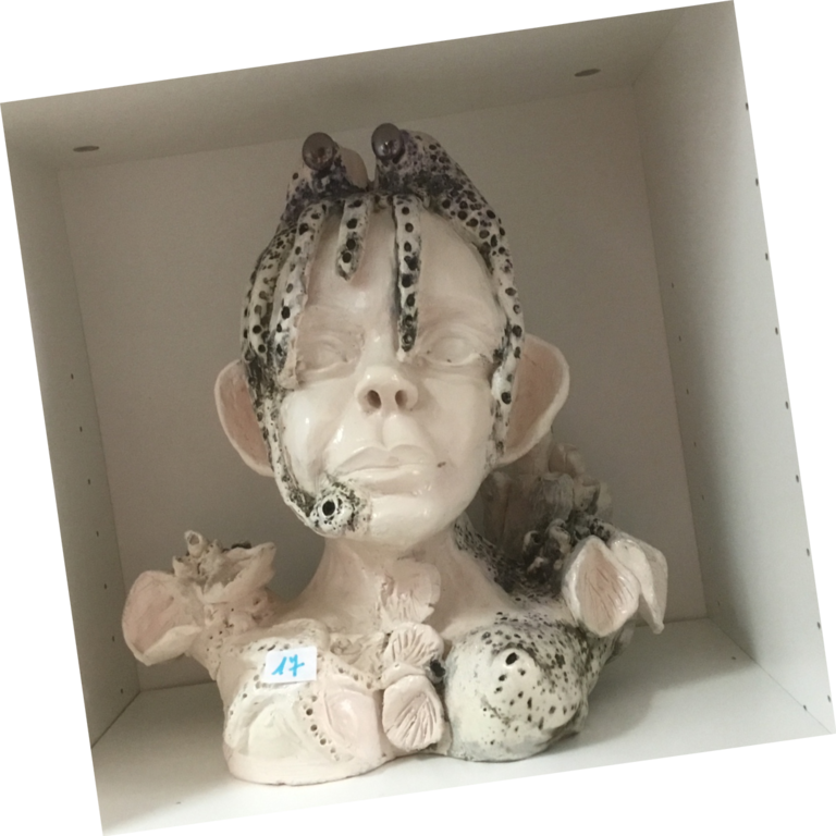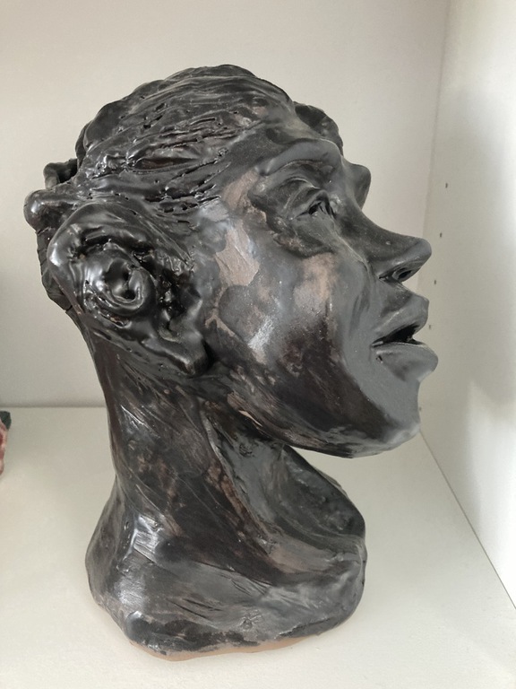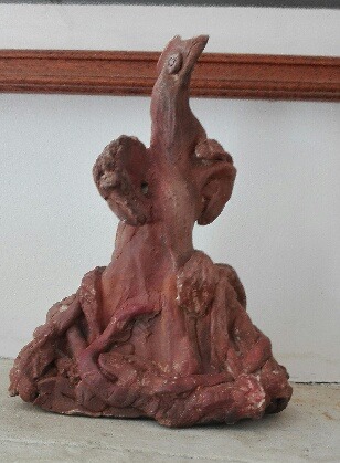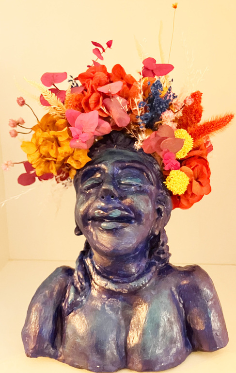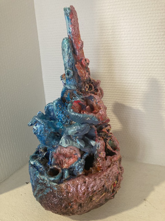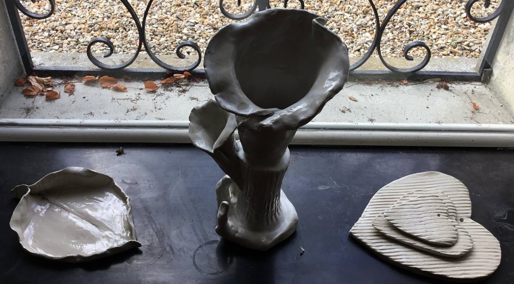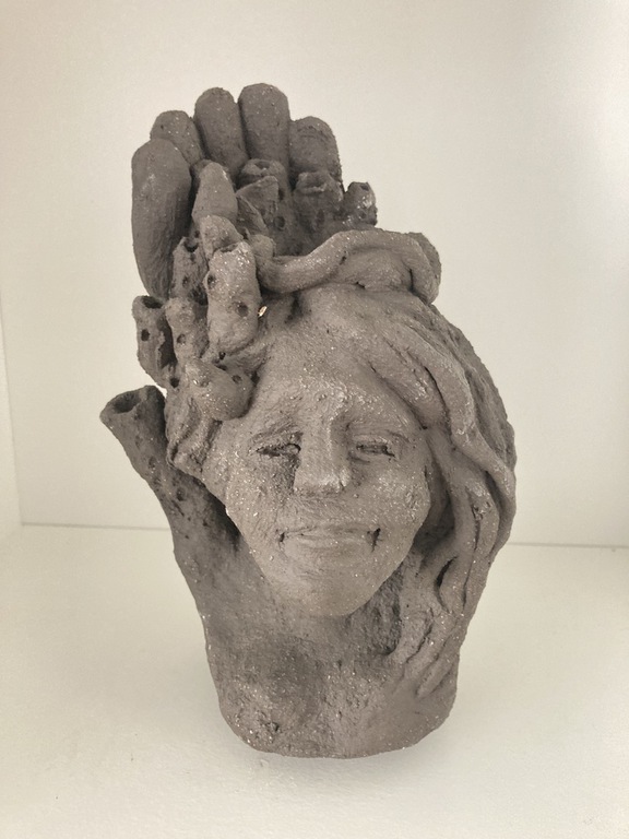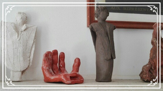 Elle sulpte des formes en volume, en relief soit en ronde-bosse, en haut relief ou bas relief ou modelage selon ses envies.