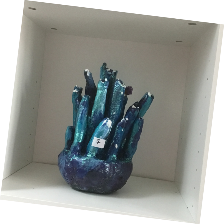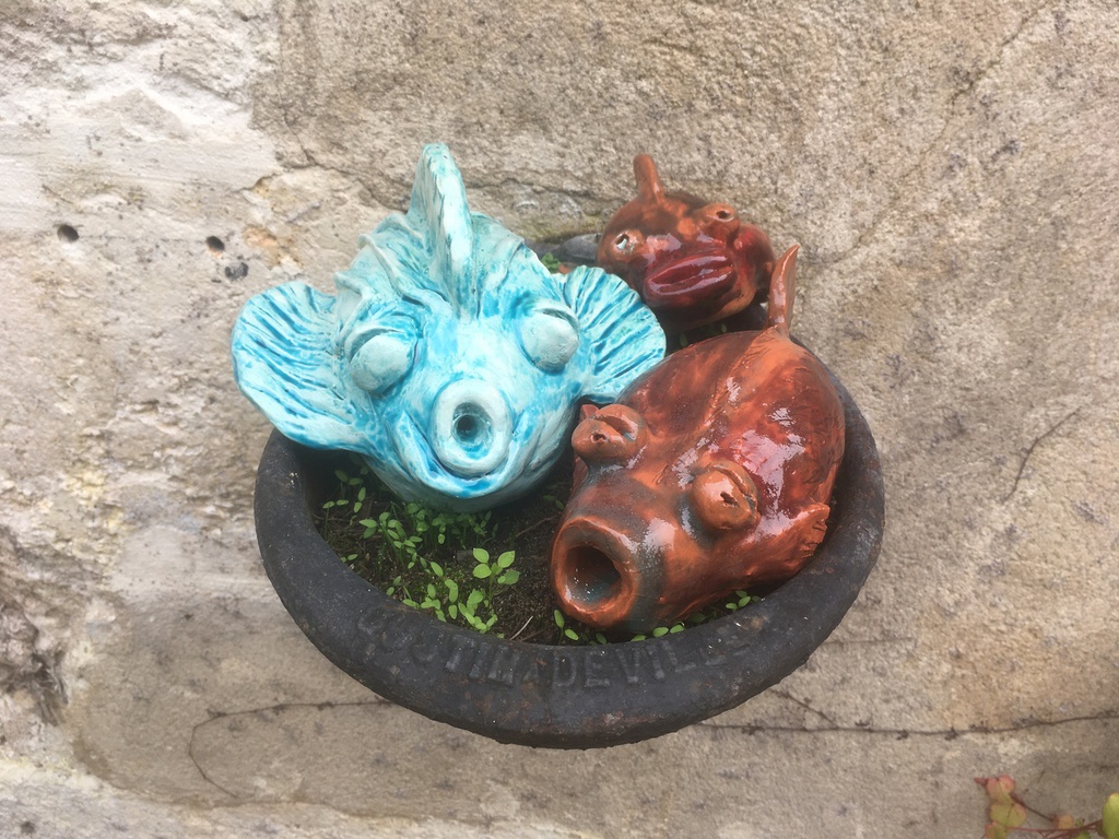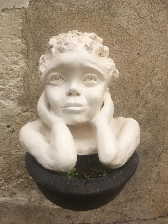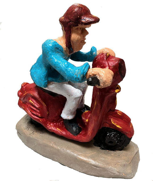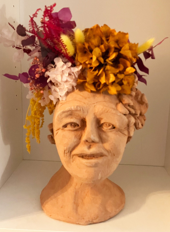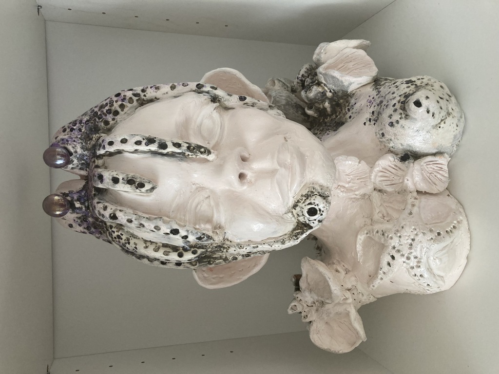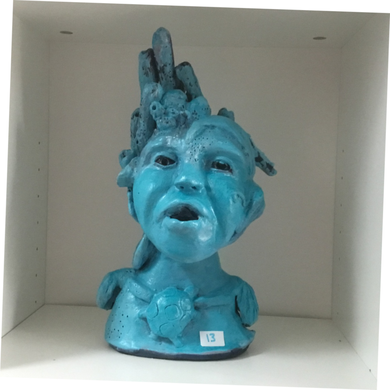 Elle sulpte des formes en volume, en relief soit en ronde-bosse, en haut relief ou bas relief ou modelage selon ses envies.